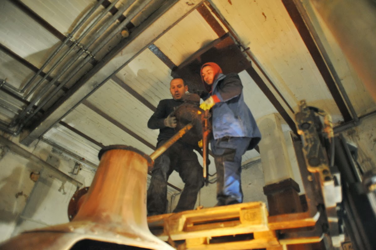 The Brauerei Hirschen, built in that location in 1890, had seen a major upgrade in 1955, year in which Jacob Carl provided the copper kettles, and the rest of the high tech equipment we are now having such a hard time dismantling. This brewery was not built with the possibility of ever re-modeling or upgrading in mind. Still, nobody, including Mr. Weber, the Braumeister, has any idea about how ole Jacob managed to put in the kettles. That skillful riveting job must have been done in situ, judging from the sandstone pillars around the doors.
